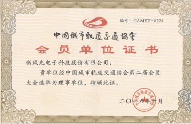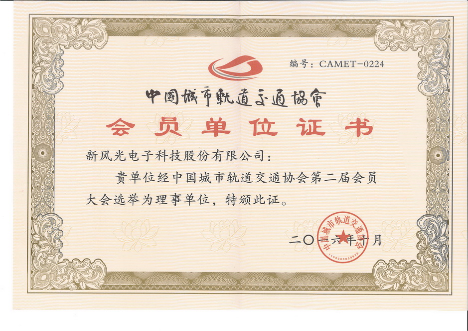 中國(guó)城市軌道交通會(huì)員單位證書(shū)