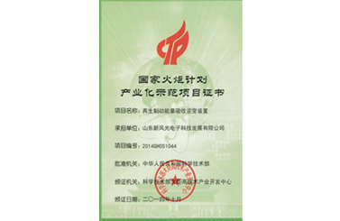 制動(dòng)能量吸收裝置國(guó)家火炬計(jì)劃證書(shū)