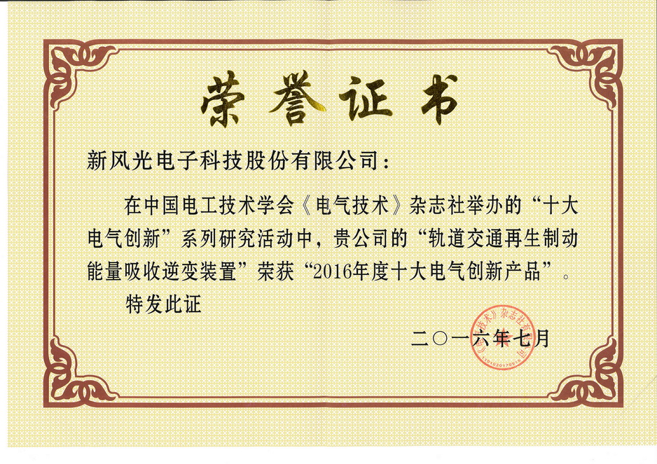 2016年度電氣創(chuàng)新產(chǎn)品證書