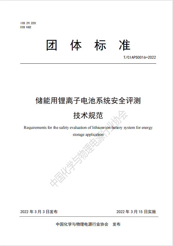 團體標準--儲能用鯉離子電池系統(tǒng)安全評測