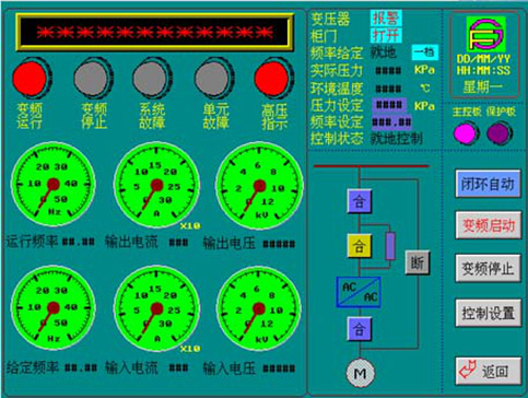 (3)完整的工頻/變頻自動(dòng)互切技術(shù)?,F(xiàn)在的高壓變頻調(diào)速系統(tǒng)一般設(shè)置工頻旁路切換柜,變頻器發(fā)生故障時(shí)能使高壓電機(jī)轉(zhuǎn)至工頻運(yùn)行,旁路切換有手動(dòng)旁路和自動(dòng)旁路切換兩種型式,手動(dòng)旁路需人工操作,適應(yīng)于無(wú)備用裝置或不重要的運(yùn)行工況,自動(dòng)旁路可在變頻器發(fā)生故障后直接自動(dòng)轉(zhuǎn)換至工頻運(yùn)行。新風(fēng)光公司提供的自動(dòng)旁路切換柜,不僅可實(shí)現(xiàn)變頻故障情況下自動(dòng)由變頻轉(zhuǎn)換至工頻運(yùn)行狀態(tài),還可實(shí)現(xiàn)在變頻檢修完畢后由工頻瞬間轉(zhuǎn)換至變頻運(yùn)行的功能,整個(gè)轉(zhuǎn)換過(guò)程不會(huì)對(duì)用戶設(shè)備的運(yùn)行造成任何影響。
