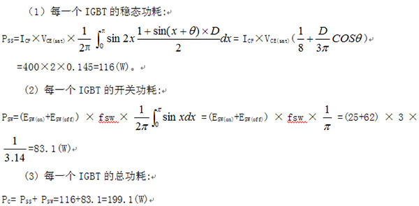 ?。?)每一IGBT(兩個(gè)橋臂)總功耗為: