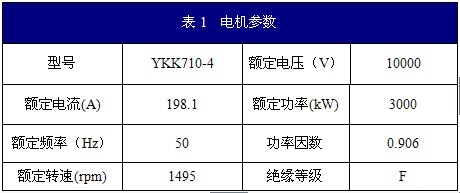 /3000kW三相鼠籠式異步電動(dòng)機(jī)(電機(jī)參數(shù)如表1所示),根據(jù)蒸發(fā)風(fēng)機(jī)的要求2559kW,轉(zhuǎn)速2564