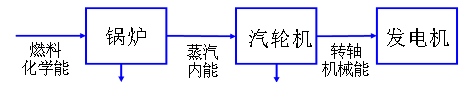 電廠主要設(shè)備:鍋爐、汽輪機(jī)、發(fā)電機(jī)。
